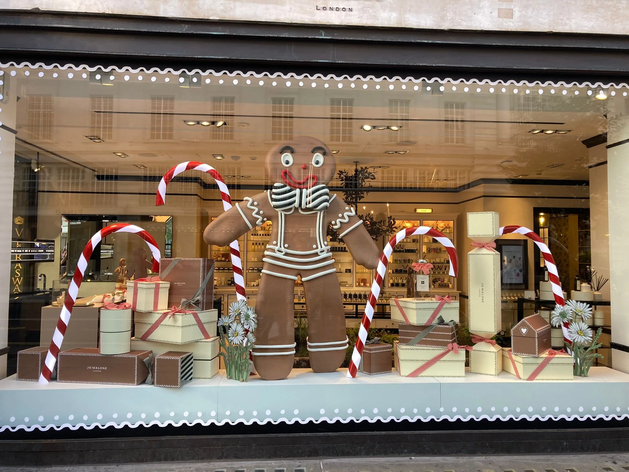 Regent Street, Christmas 2023 Window with 2m high Gingerbread Man, Oversized Boxes and Illuminated Candy Canes